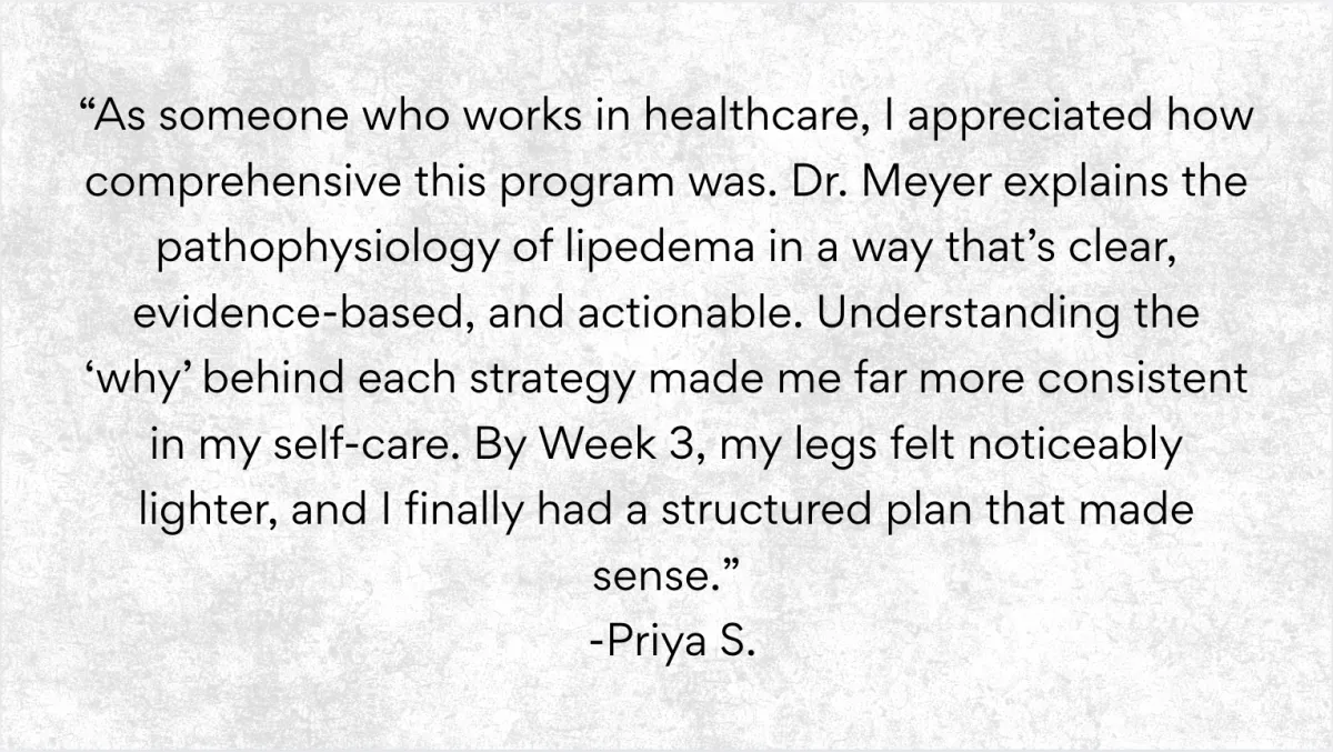 Stay consistent and on track with built-in accountability and expert guidance from a team that truly understands Lipedema